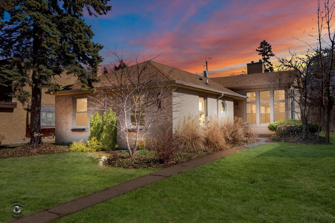 Welcome to this Classic Mid-Century Modern Masterpiece! Thoughtfully updated with today convenience while honoring its timeless architectural character. From the moment you step into the sun-drenched living room, the home's quality is on full display through soaring high ceilings, intricate custom millwork, and warm hardwood flooring that flows throughout the main level. Custom built-in shelving, oversized windows ensure the space feels bright and airy. The thoughtful layout continues through an arched doorway into a chef's delight kitchen, where a plenitude of custom cabinetry and granite countertops are complemented by a suite of stainless-steel appliances, including a refrigerator updated in 2020. The sun filled eating area has sliding doors leading to the outdoor space so you may transition outside to a custom private, concrete patio and a fully fenced yard that offers a secluded outdoor retreat. Entertainment options abound, whether you are hosting a formal gathering in the living room or relaxing in the impressive family room. This secondary living space features dramatic floor-to-ceiling windows, a beamed ceiling, built-in shelving and a convenient bar for effortless hosting. Each of the four bedrooms features hardwood floors and ceiling fans, including a primary suite with a tastefully remodeled private bath and a fourth bedroom equipped with a cedar closet and its own dedicated bathroom. This well-maintained home features a finished lower level with a spacious recreation room, storage room, and a laundry area, providing plenty of additional living and functional space. The exterior offers a custom patio in a private, fenced backyard, ideal for relaxing or entertaining. Several major updates have been completed, including a roof that was fully torn off and replaced (12 yrs), the furnace and central air conditioning were installed in 2020, windows were replaced, electrical service and panel were updated in 2017, new hot water heater (2025) & new sump pump with battery back-up (2023). Two bathrooms were completely gutted and remodeled in 2018, with an additional bathroom remodeled in 2017. Ideally located in central Beverly, the home is within walking distance to restaurants, parks, schools, shopping, and the Metra train, offering both convenience and a great neighborhood setting.