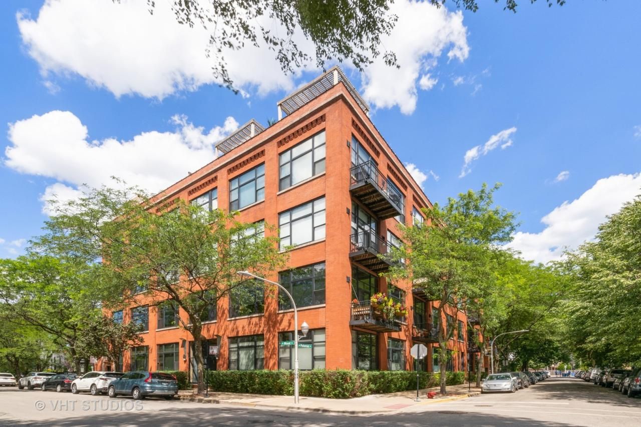 Exquisite, rarely available South-facing brick & timber penthouse loft in the heart of Wicker Park! All-season natural light, featuring an open floor plan with 14' ceilings & unobstructed skyline views creating an unmatched space! Impressive upgrades include Carrera marble kitchen island with built-in dining & custom cabinetry, custom built-in closets & laundry, built-in bookcases, custom Lutron lighting, surround sound system, new AC unit, private rooftop deck with turf putting green & more. Top of the line stainless steel appliances including six-burner Smeg range, high-end finishes with marble countertop & backsplash, KOHLER sink, white cabinetry, dark wood vinyl floors, TOTO NEOREST toilet & bidet, Restoration Hardware light fixtures, Nest thermostat & gas fireplace. A spacious loft above the kitchen serves as a wonderful versatile space for a den & work-from-home office overlooking the living room, with oversized windows extending through the loft. Primary bedroom has en suite bath, custom built-in closets & laundry. Other features include large black-framed windows, common & private rooftop decks, walk-out South facing balcony off kitchen with room for a grill, additional storage space in basement, assigned gated parking spot & bike room and secured entry to building. Steps away from popular restaurants, coffee shops, shopping & entertainment along Division, Milwaukee & Damen, nestled on a quiet side street. Great location walking distance to Wicker Park, Dean Park, The 606, Jewel, CTA Blue Line, Pritzker Elementary & other District 299 schooling. Short drive to I-90!