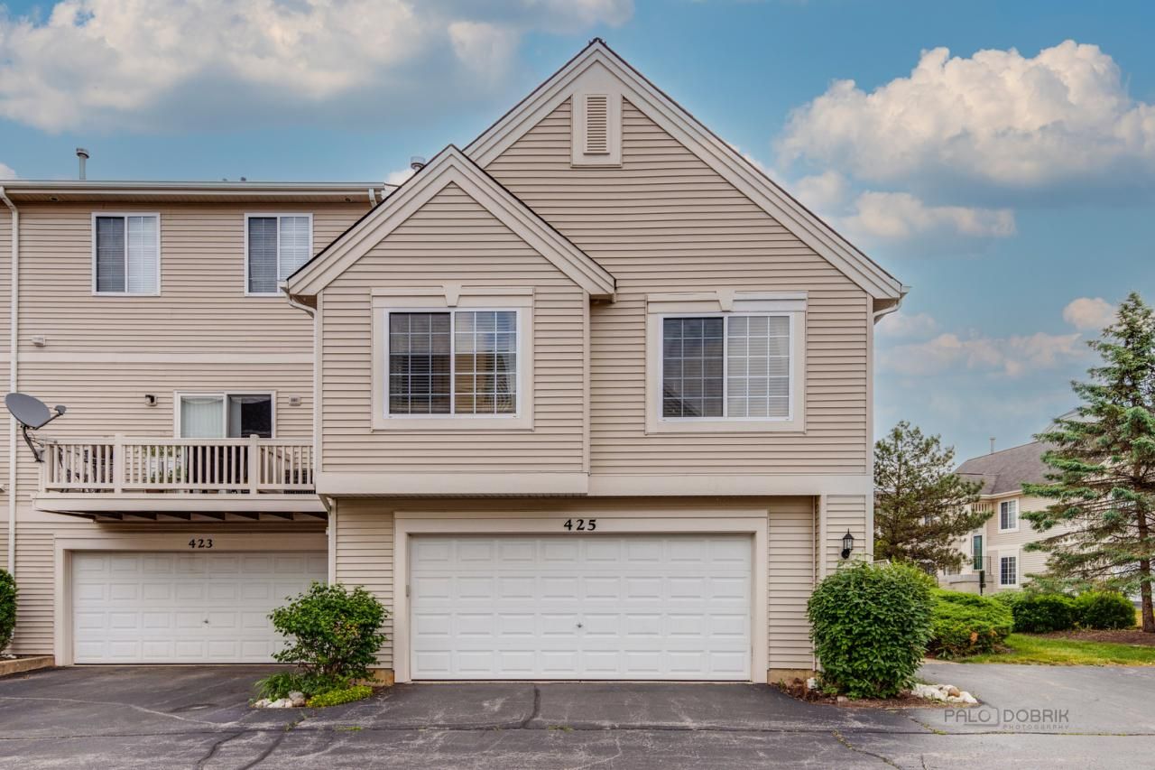 Welcome home to 425 Cary Woods Circle! This interior end-unit is tucked away with plenty of green space and right next to the park. You will find 2 bedrooms, 3 FULL bathrooms, vaulted ceilings, gas fireplace and private deck/balcony. The kitchen features 42 cherry cabinets, stainless steel appliances and sink and an eat-in area for a small table. The loft offers flexible space for an office, reading nook or play area. Downstairs you will find a ton of extra living space, with the possibility of a 3rd bedroom. There is an attached 2 car garage and 2 designated parking spaces near the front door. This home is close to the Cary Country Club, downtown Cary and the Metra. Come check it out, it wont last!