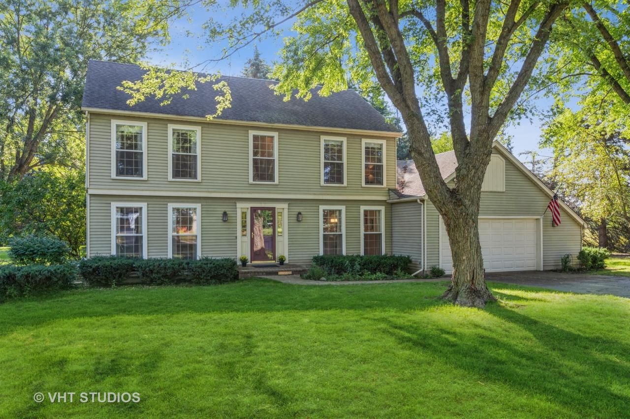 Spend your fall enjoying campfires under the stars on this 1.5 acre property surrounded by beautiful mature trees. This Original Owner/well maintained home is located in sought after The Springs neighborhood, and walking distance to TOP RATED, Prairie Ridge HS. The family room is at the center of the home, with like-new wood floors, on trend wood beams on the ceiling, custom built-in bookcases and a masonry hearth with a cool rustic wood mantle. The kitchen has a large pantry closet and an eat in area that overlooks sprawling views of nature. Step out the atrium door to extended private living space on the new deck with views that change with the season. The main level also features a very generous living/flex room, with floor to ceiling windows filling the room with natural light. A separate dining room and laundry/mud room just off the garage round off the main level. The 2nd level has a primary bedroom + 3 add'l generous sized rooms, plenty of closet space and 2 full baths with granite tops, update fixtures and lighting. The finished portion of the basement has a wet bar with mini frig, bar, and popcorn machine (all included). The home sits back beautifully on the home site, with a true 2.5 car garage w/exterior door, a long drive and asphalt extension for add'l parking needs. The neighborhood has private ponds for residents use only. It feels like the country, but truly is just minutes to all the amenities you could need: Paved bike trails, Sternes Woods, Veterans Acres, downtown shopping, multiple golf courses, Metra train station, Three Oaks Recreation, Northwestern Hospital and more. Updates: NEW Deck/2022, NEW Roof/2017, HVAC/2015, NEW Carpet/lower level and stairs/hall, New Vinyl Plank flooring, NEW light fixtures, Gutter covers/2019. LOW TAXES!