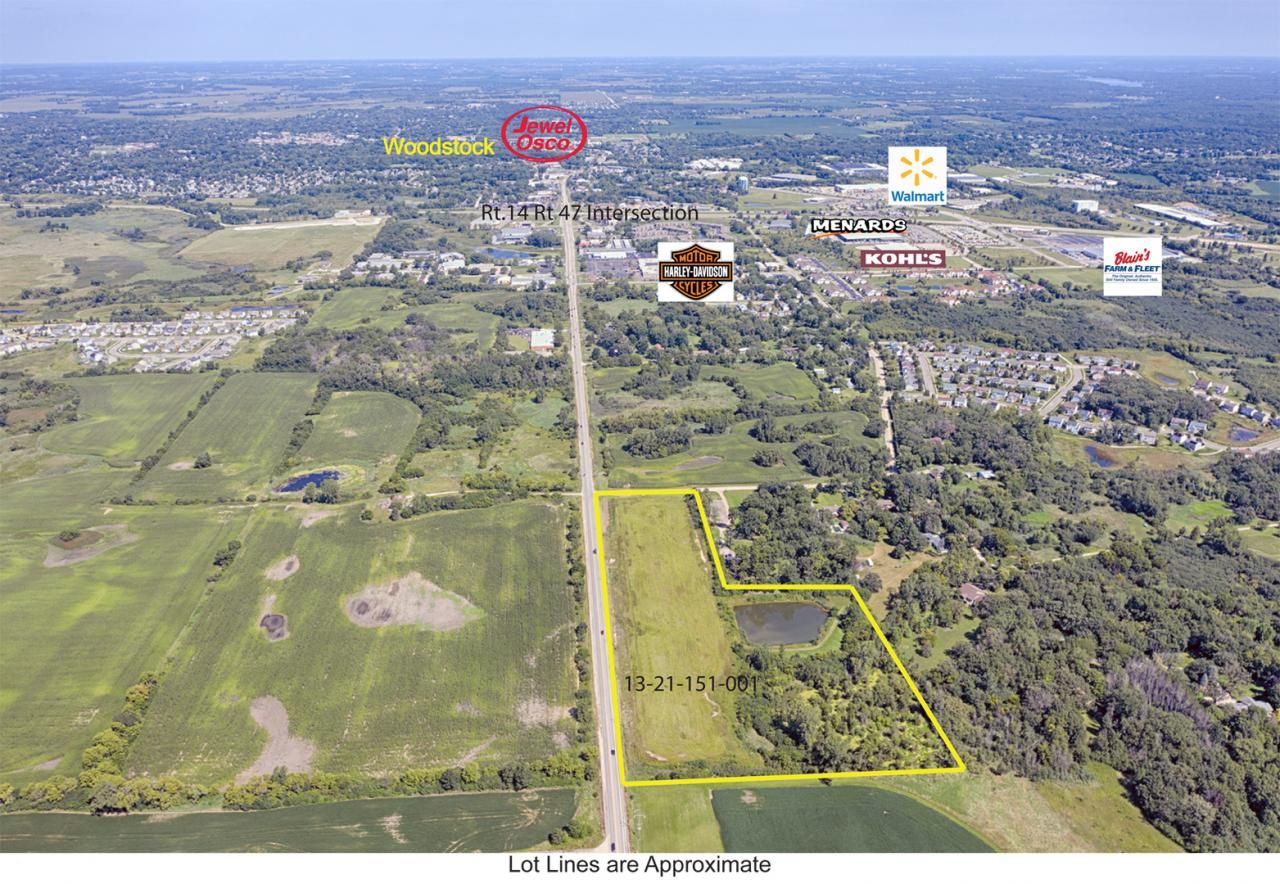 HUGE PRICE DECREASE!...Fantastic Development or Investment opportunity. IDOT Traffic Count = 15,400 vehicles/day.... 15 acre site may be a candidate to subdivide into multiple lots.... Site is Building Pad ready.... Commercial size access point with 1,320 feet frontage on Rt47 & 332 feet frontage on Hercules Rd.... Stormwater Detention Design is County approved and in place.... Utilities nearby.... Across the street from the Apple Creek Subdivision and 1 mile south of RT14.... County zoned A-1.... Possible annexation to Woodstock (approved pre-annexation agreement). County has assigned 12009 Hercules Rd, Woodstock as an address
