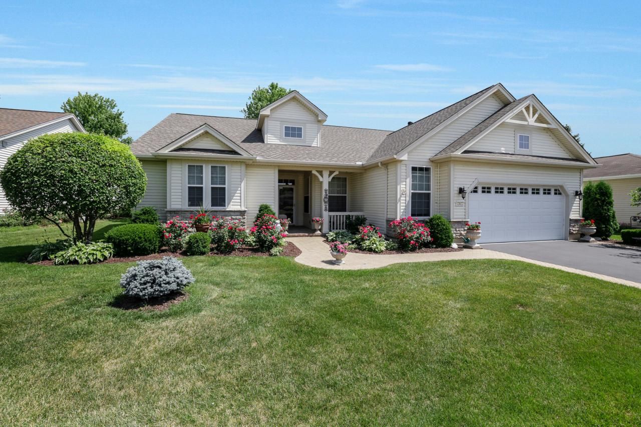 IF A VIEW OF NATURE IS IMPORTANT THIS IS THE ONE!! PRISTINE TRAVERSE BAY MODEL - DEL WEBB ORIGINAL ~ BACKING TO GOLF COURSE AND NATURE ~ VERY NEAR WILD FLOWER LAKE ~ BRICK PAVER RIBBONS, WALKWAY, FRONT PORCH AND CUSTOM PATIO ~ APPROX 2152 SQ FT ~ NEW ROOF IN 2024 ~ THREE BEDROOMS ~ CAMBRIA COUNTERS ~ OAK CABINETS WITH CROWN MOLDING ~ HI END SAMSUNG REFRIGERATOR ~ WASHER AND DRYER THREE YEARS OLD ~ DISHWASHSER TWO YEARS OLD ~ SCULPTURED BERBER CARPET ~ TRAY CEILING IN DINING ROOM PLUS PRIMARY SUITE ~ TWO LARGE PANTRIES ~ CEILING FANS ~ FORMAL LIVING AND DINING ROOMS ~ ROUNDED DRYWALL CORNERS ~ CUSTOM DRAPERIES, SILOUHETTES ~ CENTRAL VAC SYSTEM ~ LAUNDRY SINK ~ BAY WINDOW IN PRIMARY ~ HIS AND HER CLOSETS ~ SPACIOUS 2 -1/2 CAR GARAGE WITH ENERGY PACKAGE ~ PULL DOWN STAIRS TO FINISHED ATTIC ~ MATURE LANDSCAPING ~ DON'T MISS THIS ONE!!